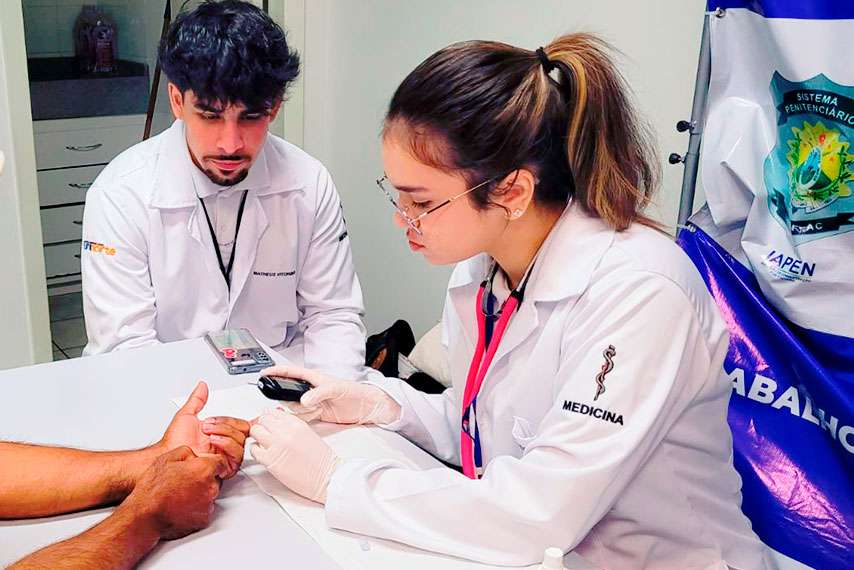 Prezamos pela formação de profissionais éticos, que tenham a habilidade de exercer a profissão de forma humanizada e crítica, buscando definir o diagnóstico da doença, além de atuar na recuperação do paciente da melhor forma possível. Os médicos que formamos são capacitados para atuar com seriedade e responsabilidade, buscando os melhores procedimentos a fim de auxiliar na recuperação da saúde de seus pacientes. Por isso convidamos você a conhecer o que faz nosso curso de Medicina ser nota máxima no MEC! 01 - METODOLOGIA ATIVA As disciplinas são integradas e o aprendizado é baseado no modelo PBL (Problem Based Learning). 02 - CORPO DOCENTE Grade com professores especialistas, com vasta experiência em diversas áreas de atuação. 03 - ENSINO PRÁTICO Na Uninorte os alunos têm aulas práticas desde o primeiro período e com isso desenvolvem habilidades importantes para o mercado de trabalho. 04 - ESTRUTURA DE PONTA Um dos mais modernos Centros de Simulação Realísticos da Região Norte: 28 laboratórios de saúde e laboratório morfofuncional e dois ambulatórios médicos, um deles no próprio campus. 05 - FORMAÇÃO COMPLETA E PROJETOS ESPECIAIS O curso de medicina da Uninorte tem o objetivo de formar profissionais capazes de atuar em todos os níveis de atenção à saúde como agentes de transformação social. Ao longo do curso o aluno vivencia atividades práticas de atendimento à população e desenvolve uma formação médica generalista e da família. Então, se seu sonho é cursar Medicina, ele começa aqui!